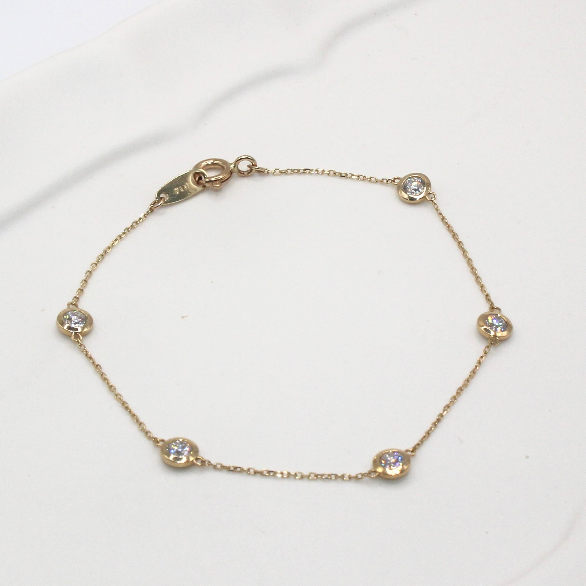 This five bezel diamond bracelet is perfect to wear on its own or stack with other bracelets. Sometimes, we need a little bling in our life and this is the perfect bracelet for that!