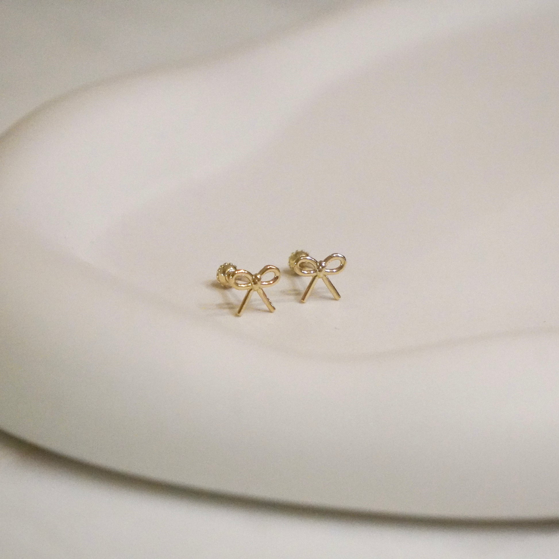 These dainty ribbon studs created in solid 14K gold is perfect for all ages. The size of the design makes it great to wear as main earrings or to even wear for second piercings as well!
